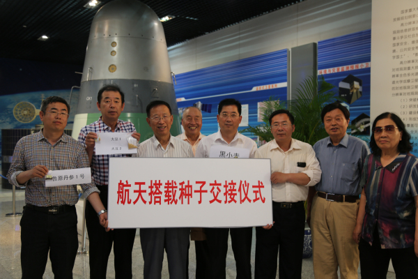 航天搭載種子交接儀式上,我公司譚總和有關(guān)人員的合影。